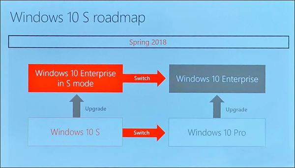 今天,微软又宣布了“Windows 10 Enterprise in S mode”,也就是企业版的Windows 10 S,或者说Windows 10 S的企业版,相关设备激想在2018年春天上市。