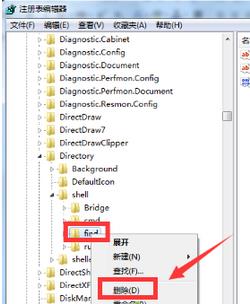 步骤五:按照上述步骤进行操作后,在find项上右击选择“删除”,并退出注册表就行了。