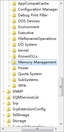 2、进入注册表编辑器后,在左侧中依次展开“HKEY_LOCAL_MACHINESYSTEMCurrentControlSetControlSession ManagerMemory Management”;