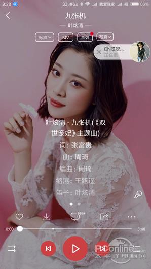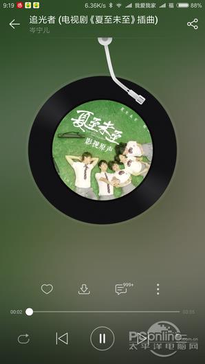 网易云音乐的播放器界面默认采用了转盘形式,不过加入了唱针的设计看起来就像唱片机,而且唱针是可以拨动的。在播放器界面。点击转盘可切换到歌词显示模式。没有直接的音质切换按钮,需要在菜单寻找。