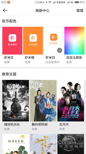 虾米音乐仅支持界面换肤功能,部分需会员使用。