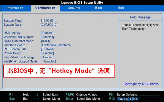 注意:部分Lenovo(Ideapad)笔记本电脑BIOS中无“Hotkey Mode”热键模式切换开关