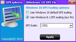 3、双击打开 windows10_dpi_fix 在软件界面点击选Use windows8.1 DPI scaling(our fix) 如图: