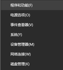4、在开始菜单上单击右键,选择 程序和功能 ;