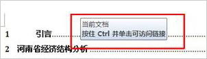 3、进过以上设置基本的目录就会自动生成,我们将鼠标移动到任意标题上就会弹出提示:“当前文档按住Ctrl并单击可访问链接”;