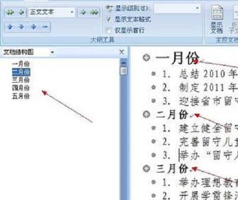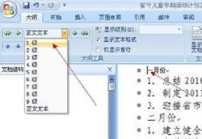 2、把光标停留在一级目录的前方,点击左上方的一级目录,www.w10zj.com例:把一月份、二月份、三月份。。。。。。等作为一级目录;
