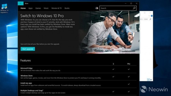 一旦用户成功安装Windows 10 S系统,就能使用系统的所有功能,如果用户此前已经获得授权,那么用户也可以到Windows Store上升级至Windows 10专业版。