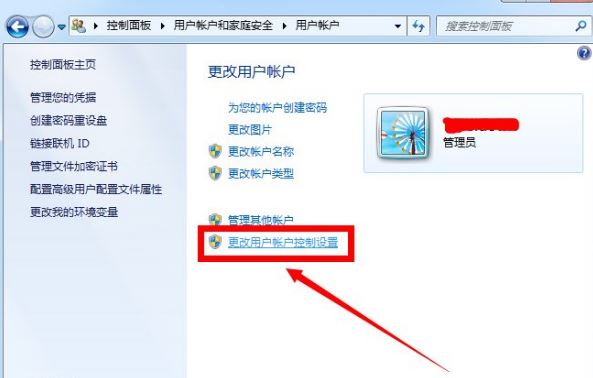 3、点击“更改用户账户设置控制”项。
