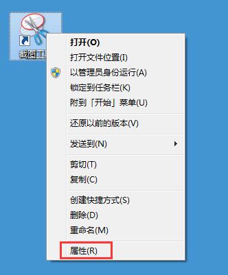 4、在桌面上找到截图工具的图标,右键点击它,选择“属性”,如图所示