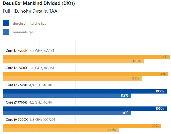 GameStar在评测中发现,i9-7900X居然跑游戏还不如四核心的i7-7700K,这让媒体很诧异。