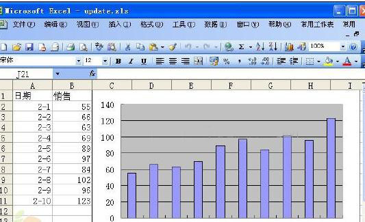 做完以上工作,朋友的问题便得到了解决。当我们输入新数据时,图表会自动更新,赶紧试一下吧。如图所示,加上了2月10日的销售,图表就自动更新了。最后需要注意的是,在使用OFFSET函数时,一定要将COUNTA函数指向第一个数值数据,如果指向了第一个非数值数据,那么自动更新就无从谈起了。