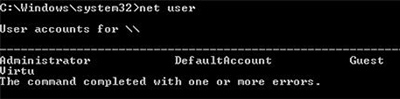 要设置密码,我们在命令提示符里输入net user命令。这个命令会列出所有账户的名字,如下图: