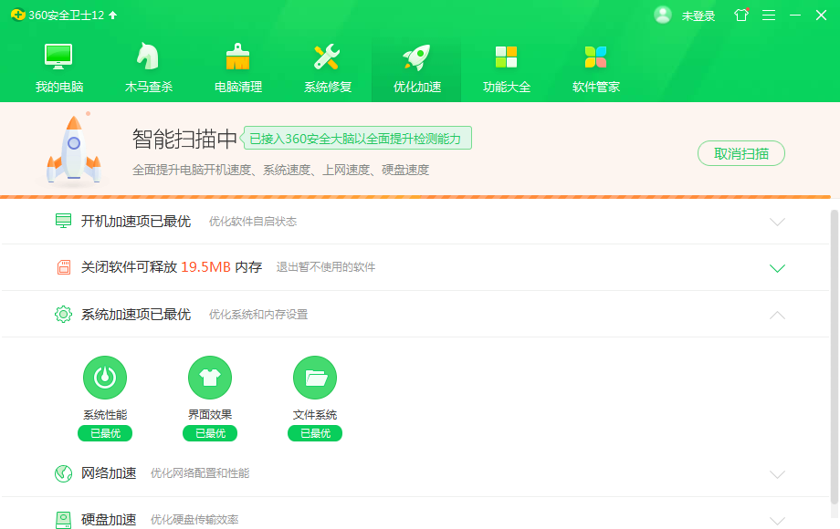3、软件会智能帮助我们优化电脑中可以优化的选项,只需要耐心等待即可。