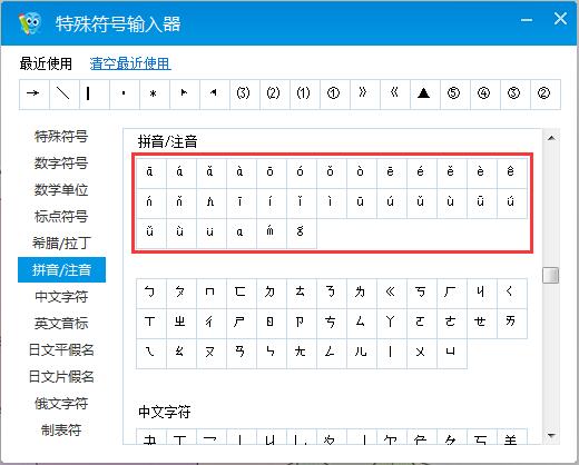 右键输入法的打开“特殊符号”,选择“拼音/注音”,可以找到一些拼音声调。