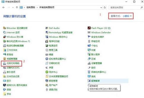 打开控制面板之后,把“查看方式”改为“小图标”,然后找到“任务栏和导航”并且将其打开,然后按照第一部把“自动隐藏任务栏”的勾选去掉,再按应用后确定,如图所示: