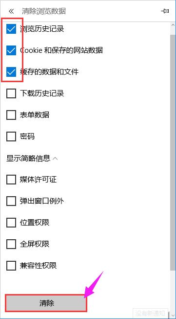 3、再在弹出的的选择项中,前面的三个选项,勾上。接着点击清除。把临时缓存和历史记录都清除后即可正常访问路由器设置界面。