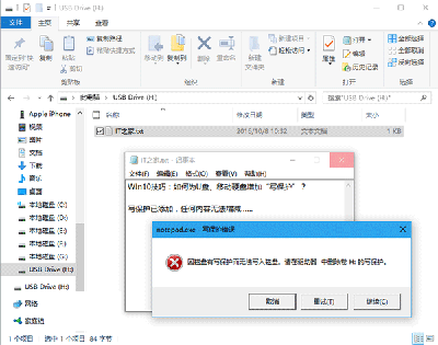 如果此时已经有U盘或者移动硬盘连接电脑,拔下再连接后,修改即可生效(如下图)。此时所有连接这台电脑的移动设备均变为“只读”属性,也就是说无法被写入,但可以打开、复制其中文件。如果电脑恢复正常,想解除移动存储的“写保护”状态,只需要把WriteProtect的数值数据改为0即可。