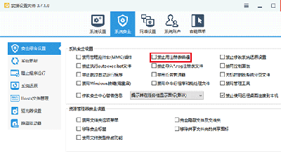 2、在“系统安全”选项卡中,找到“禁用注册表编辑”,如下图 ——