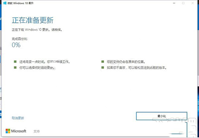4、然后便可以进入升级准备状态。此过程与Windows更新过程相同,将保持用户的个人文件,设置和应用程序不变。甚至可以使用该工具来完成Windows 10的干净安装,只是如果这样的话,用户需要从备份还原个人文件,重新配置设置并重新安装所有应用程序。