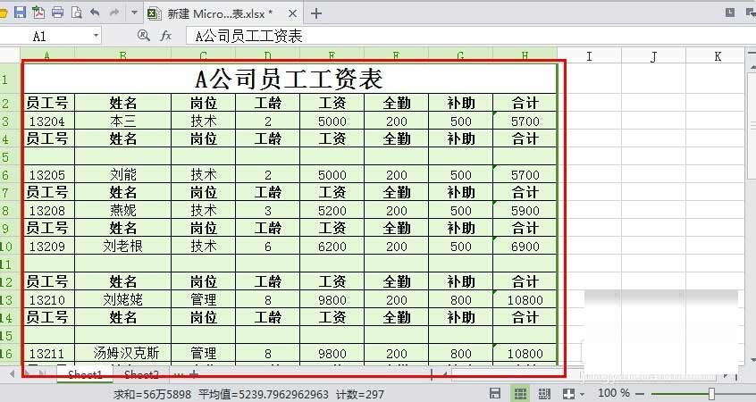 2、我们将表格从头到尾的数据全选。