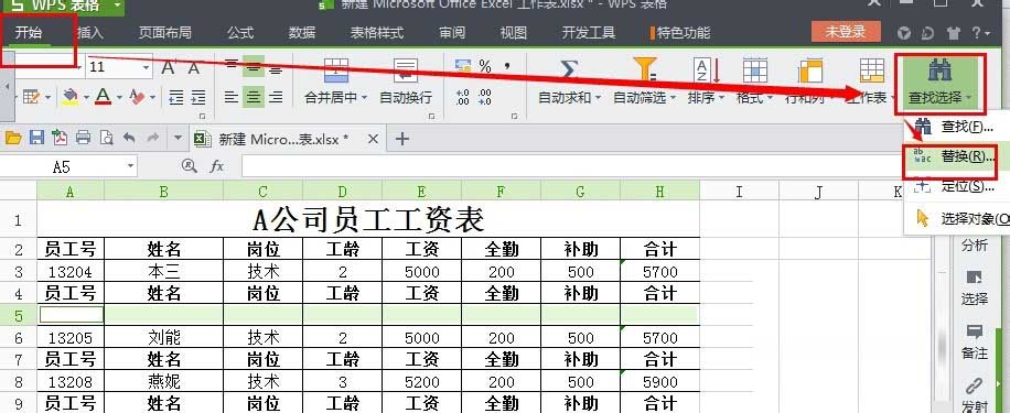 5、接下来我们使用开始----查找选择---替换。