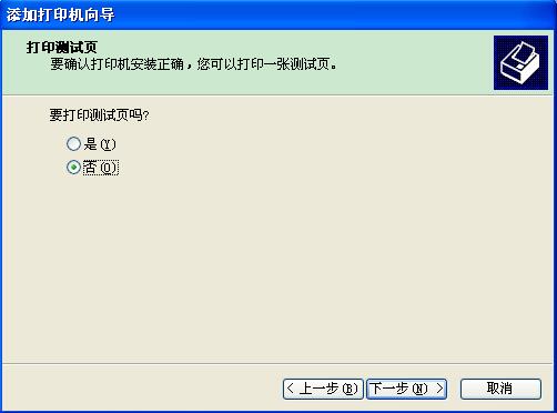 7、“打印测试页”页面中选择“否”,不打印测试页,点击“下一步”。
