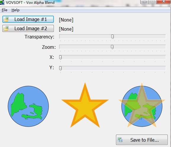 Vov Alpha Blend是一款图片合并软件,用户可以通过软件将两张图片合并成一张图片,并且合并后保持原有图片的清晰度,操作十分简单,一键便能进行合并,软件界面简洁,性能稳定,是款值得下载的图片工具。