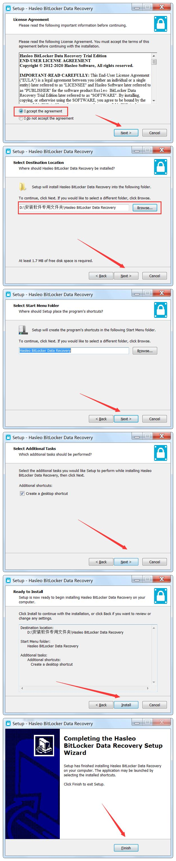 2、按照提示完成安装,本软件安装过程相当简单,此处只做图示,不做文字介绍了。