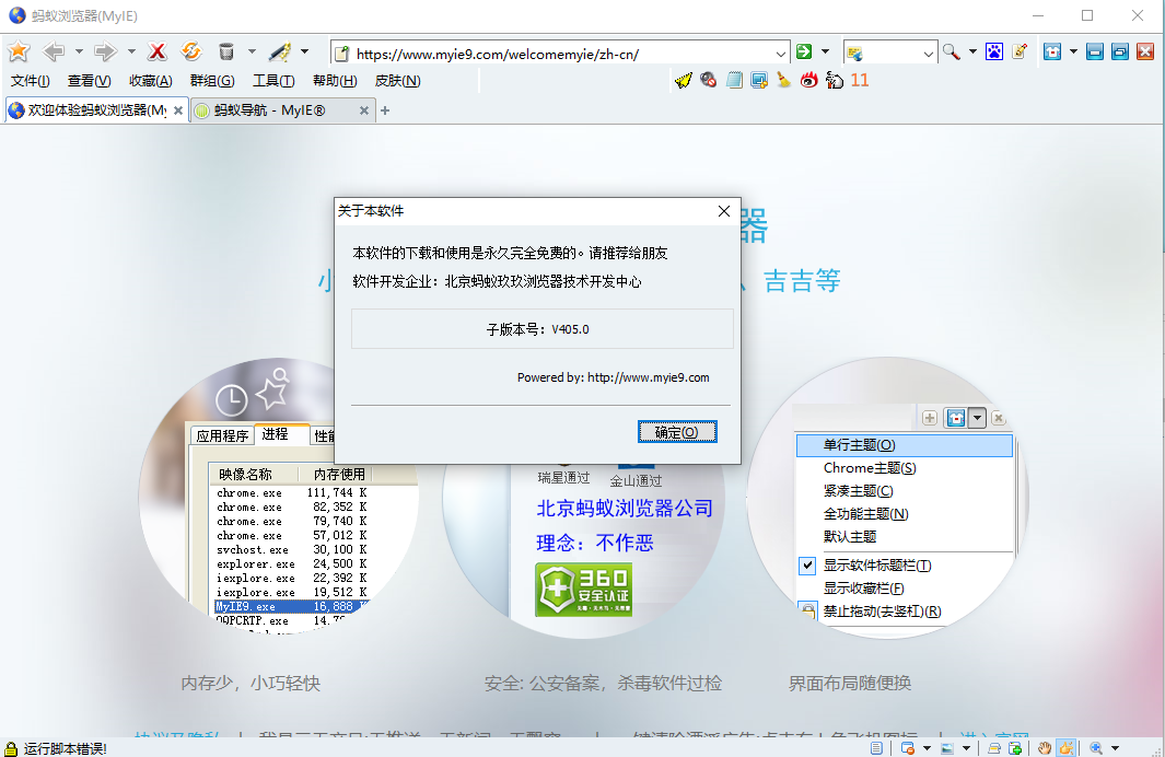 蚂蚁浏览器是中国最早的ie内核型浏览器,系统资源占用最少,速度快,屏蔽弹窗广告最好,兼容所有网页,是一款纯IE内核浏览器。蚂蚁浏览器具有快、不死、能识别恶意网站、皮肤随时换的特点,用户可以放心上网浏览任何网页,欢迎体验。