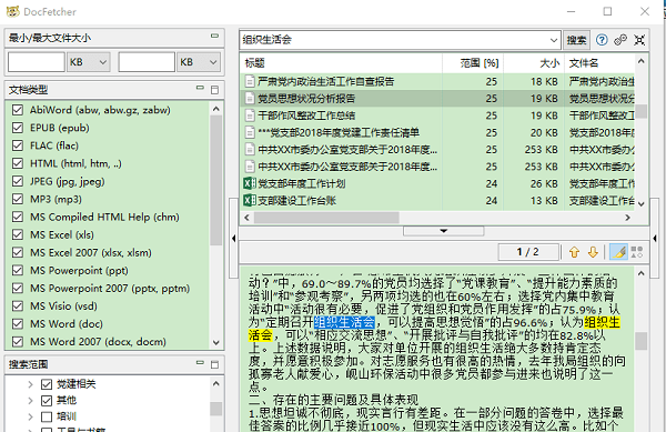 DocFetcher自带所有主要格式的坚如磐石的Unicode支持,包含Microsoft Office,OpenOffice.org,PDF,HTML,RTF与纯文本文件。