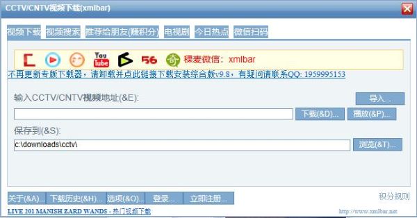 xmlbar(CCTV/CNTV视频下载器)绿色不含第三方插件,干净快速。