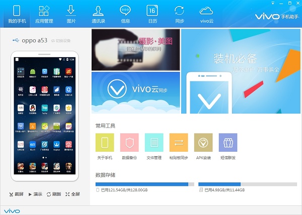 vivo手机助手是专门为vivo手机用户准备的手机管理软件,用于帮助用户管理vivo智能手机里面的资料,包括管理应用、图片、通讯录、短信,支持同步资料备份保存到vivo云,这样就算换了手机也可以快速将以前的资料给下载到手机上,有很多用户会通过这款软件管理手机里的资源,感觉会比较方便一些。