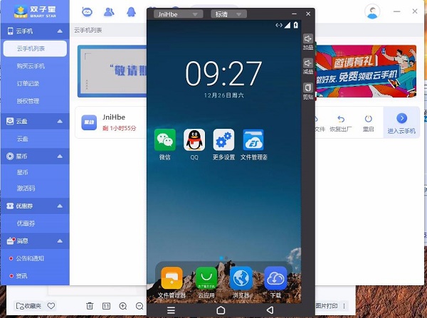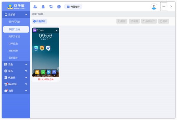 双子星云手机电脑版是一款可以操控云端手机的软件,每个人都能拥有多台云端的手机,可以用来进行手游挂机,实现便捷的操作,双子星云手机官网版软件自然是需要付费才可以进行使用,感兴趣的朋友可以先试用一下,软件可以实现运行APP、玩手游等,如果你身边缺少手机,那就可以用这款软件控制云手机来使用。