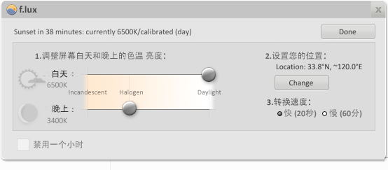 f.lux(自动调整屏幕色温) V4.120 绿色汉化版