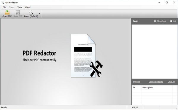 界面非常简单,启动后软件会提示用户打开一个PDF文档,然后就可以使用该程序的功能了。