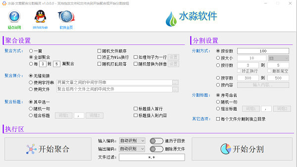 水淼软件出品的一款简单易用的聚合文章和分割文件的利器。
