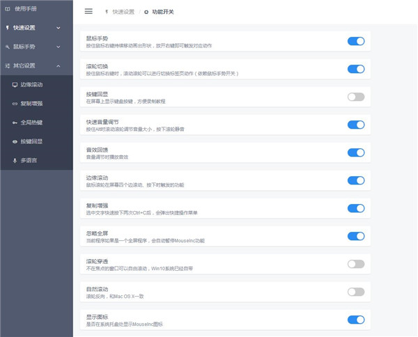 mouseinc鼠标增强软件能够帮助用户让自己的电脑和浏览器一样拥有手势滑动控制效果的软件,只需要用鼠标按住右键划出大致的方向即可实现对应的操作,是一款绿色小巧,简单实用的鼠标增强软件。mouseinc鼠标增强软件让你可以更好地利用鼠标进行电脑的各项操作,欢迎体验。
