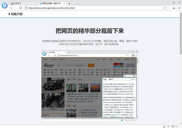 把网页中最感兴趣的部分裁剪下来。浏览器自动智能识别网页中的信息区块,你也可以手动调整,裁剪过程迅速、敏捷。裁剪下来的页面片段不会丢失页面的基本信息,如文字、图片和链接等。