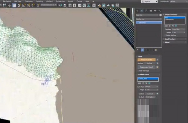 生成的网格上的几何缺陷很少见,但是有一个专用的工具可以修复该问题:“ Curbed Areas”工具栏》“细化”。步骤:绘制一个覆盖问题区域的小矩形,将其选为精修样条线并生成。“优化”工具将细分指定的区域,并且计算分辨率将提高以生成正确的网格。第二种选择是将有问题的硬景观区域样条线顶点在随机方向上稍微移动一下。简化/减少有问题的样条线的顶点数量也可能会有所帮助。