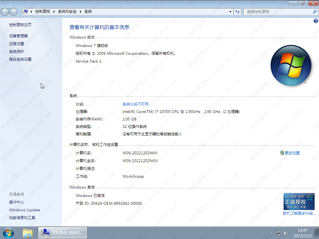 win7 32低配版针对老旧电脑型号,以原版Windows7 x86镜像为核心,通过适当优化从而提升各方面的速度,同时减少了各硬件如CPU同,内存,硬盘的占用,整体流畅不卡顿。添加了最新的驱动程序与运行库,安装后自动删除,不占空间,无需激活安装后即可使用,欢迎体验。